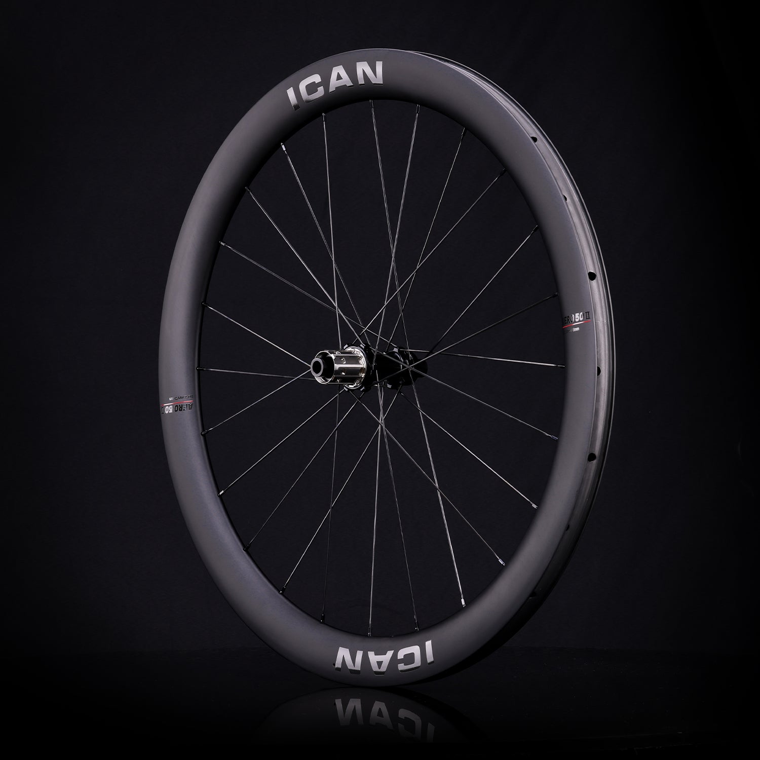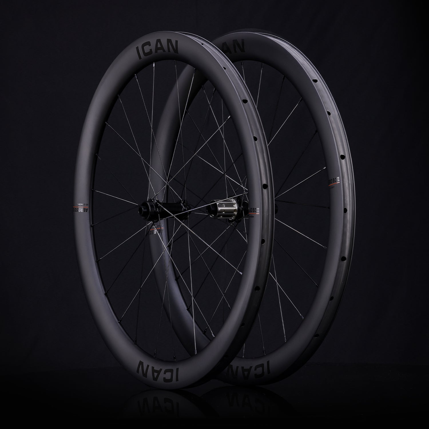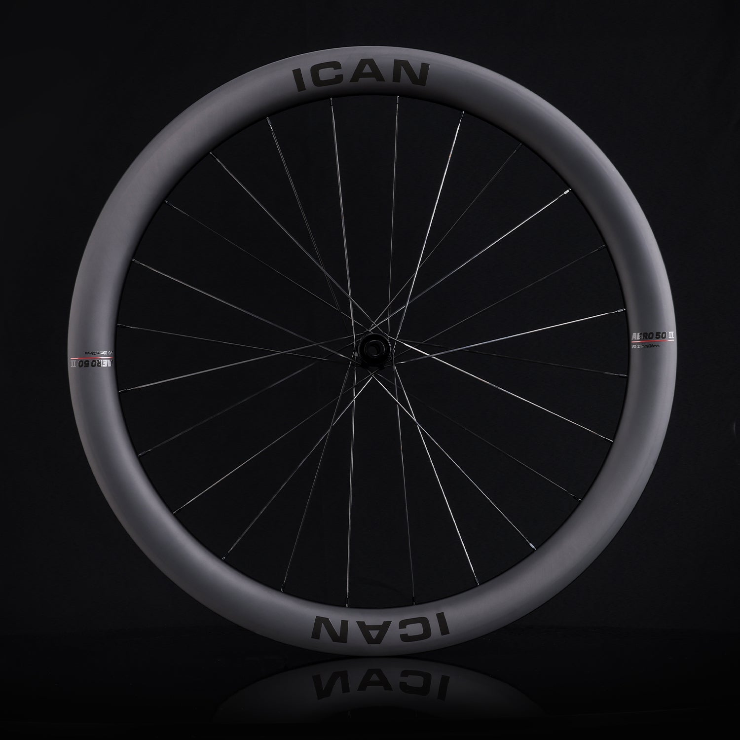 ICAN AERO 50 II Disc is a lightweight(only 1254g), aerodynamic carbon wheelset designed for all-around road performance, flat-road speed, and triathlon racing. With optimized carbon layup, a wider 23mm inner rim, upgraded D91 hubs with 45T star ratchet, and premium Sapim CX-Ray spokes, it delivers responsive power transfer, enhanced stability, and long-lasting precision. Tubeless-ready for versatile setups and fewer flats—built for riders who demand speed, control, and efficiency.