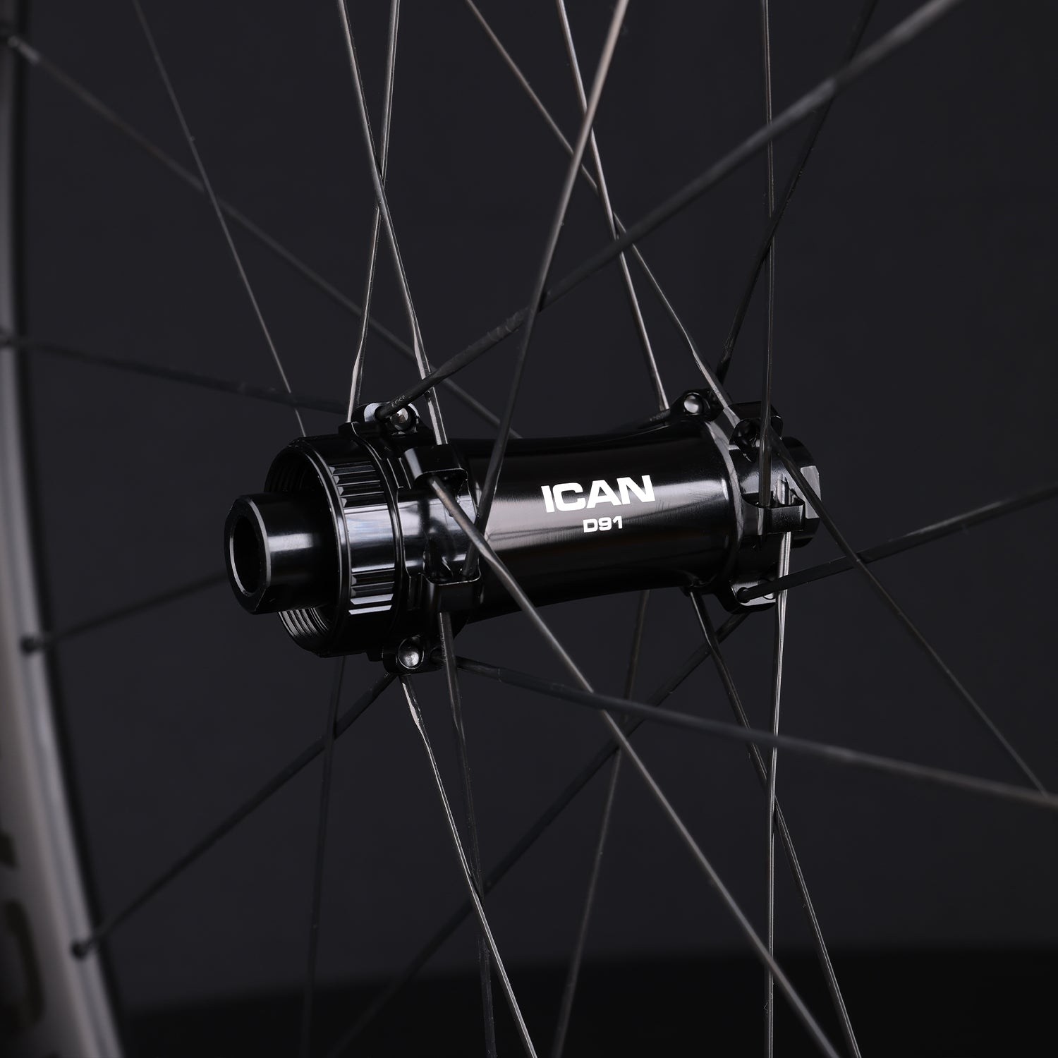 ICAN AERO 40 II Disc Carbon Wheelset – Designed for climbers and short-distance riders, this ultra-light carbon wheelset delivers quick acceleration, efficient power transfer, and confident control on climbs and descents. Featuring a refined carbon layup, 23mm inner width, upgraded D91 hubs with 45T star ratchet, Sapim CX-Ray spokes, and tubeless-ready design for a responsive and stable ride on varied terrain.